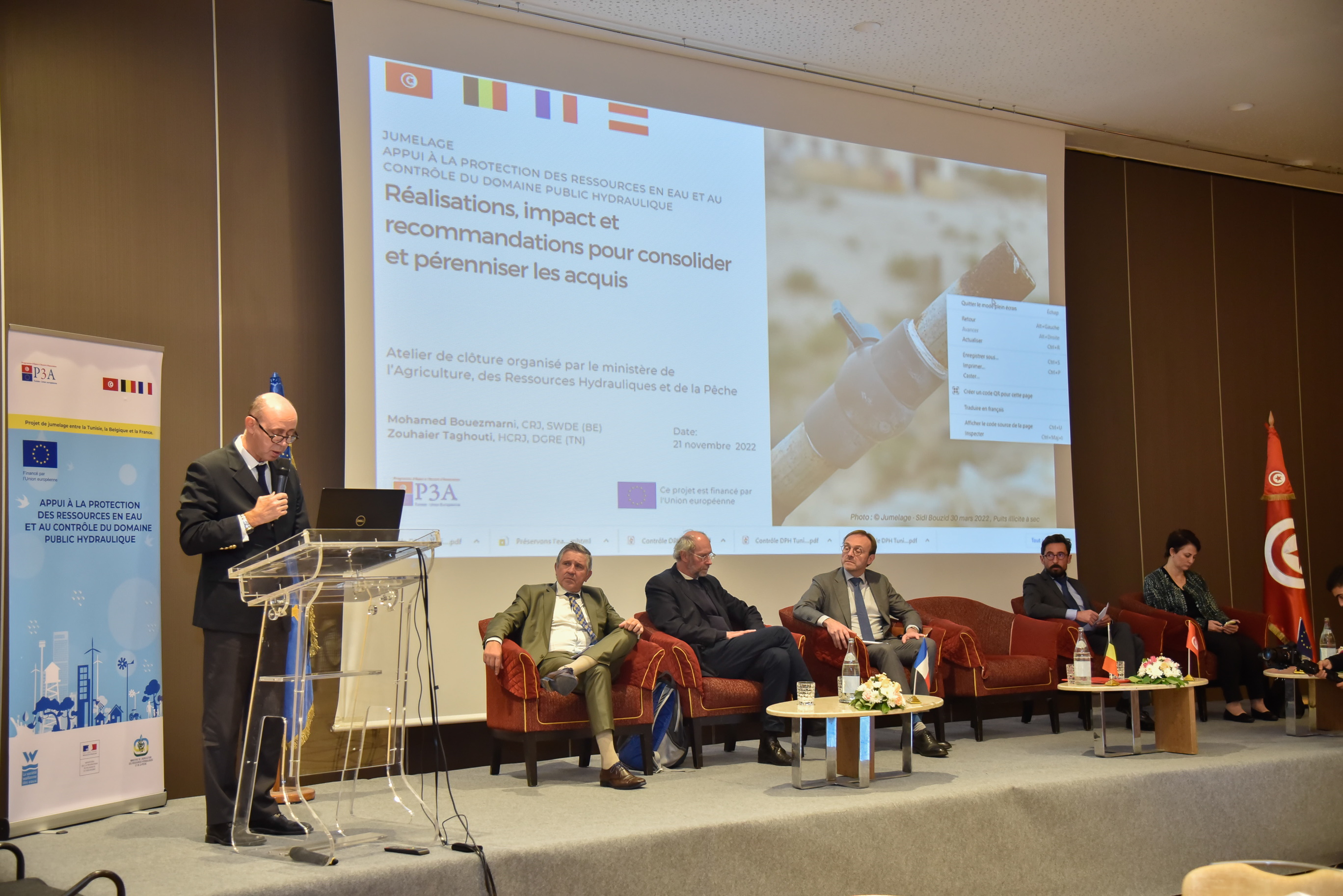 "La compétence du contrôle de l’eau en Tunisie est diluée entre 5 ministères et des dizaines d’instances différentes. Sur le fond, il a fallu initier une organisation des institutions orientées protection des ressources en eau." témoigne Marc Closset, responsable de la gestion des ressources en eau à la SWDE et coordinateur du projet.